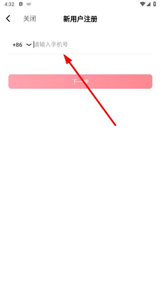 3、在新用戶注冊頁面的手機號輸入框中,輸入要注冊的手機號碼。