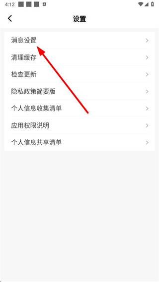 3、在設置頁面點擊消息設置選項,進入消息設置頁面。