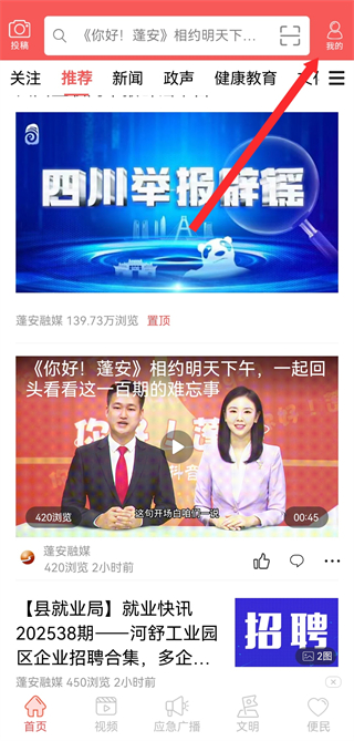 1、打開賦圣蓬安APP,點擊頁面右上角的我的,進入個人的頁面。