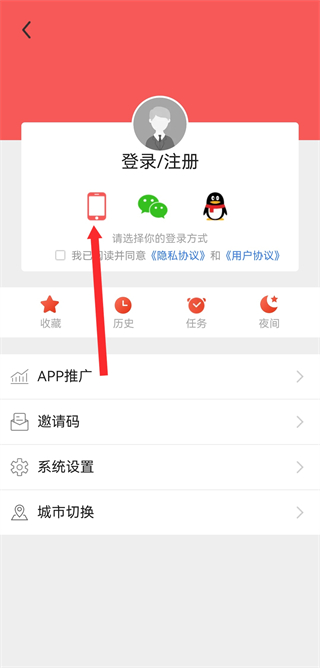2、在個人頁面中,點擊手機圖標樣式的登錄方式,進入登錄界面。