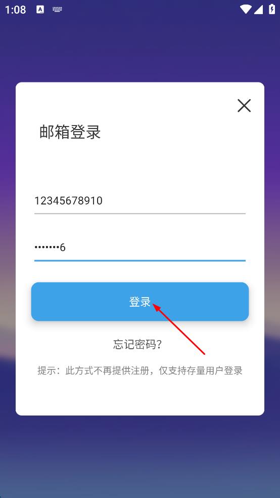 3、在郵箱登錄頁面輸入郵箱和密碼,點擊登錄按鈕,完成郵箱登錄操作。