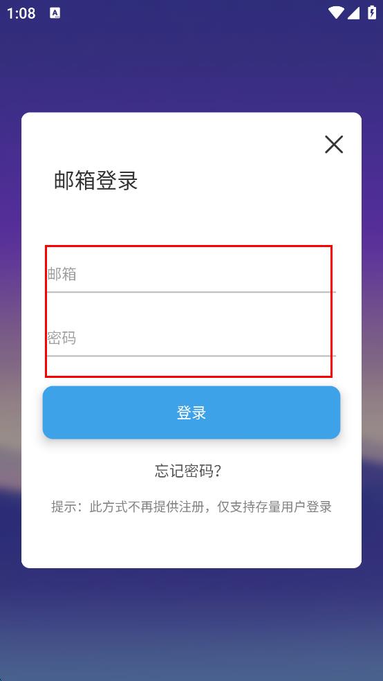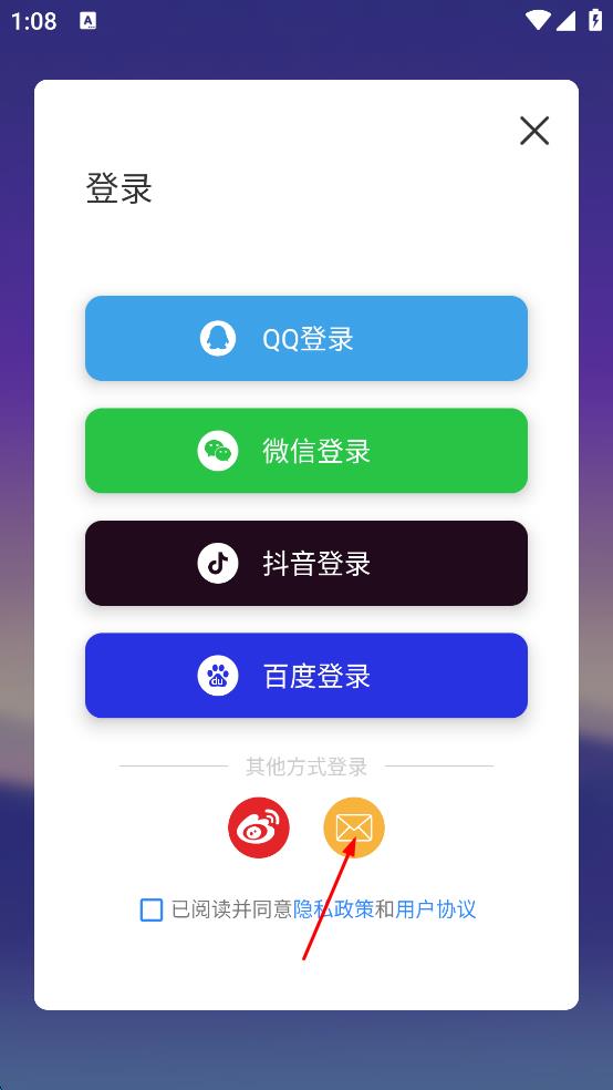 2、在登錄界面點擊其他方式登錄中的郵箱圖標,進入郵箱登錄頁面。
