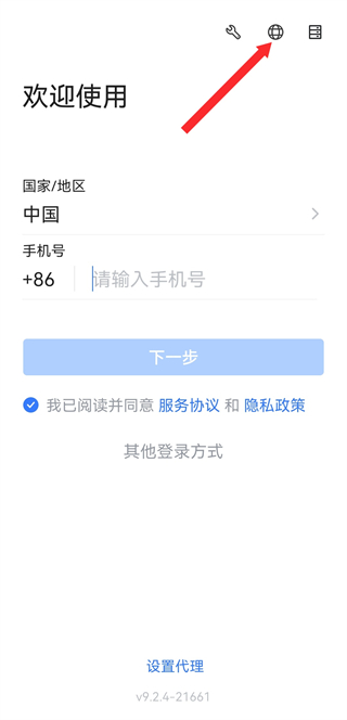 3、在成功申請完賬號之后,就可以在手機上下載這款軟件進行登錄操作,登錄賬號之前,直接點擊右下角的【同意】,完成應用的各個服務協(xié)議與隱私政策;