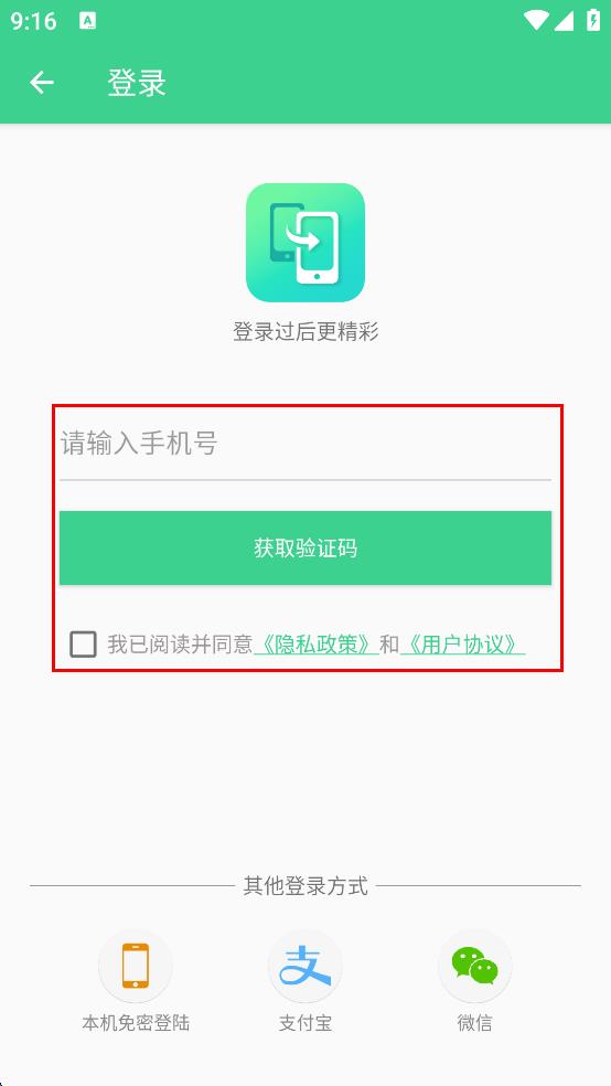 3、輸入手機(jī)號(hào),點(diǎn)擊獲取驗(yàn)證碼,勾選我已閱讀并同意隱私政策和用戶協(xié)議。