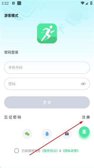1、打開WearPro APP,在登錄頁面點(diǎn)擊注冊(cè),進(jìn)入注冊(cè)頁面。