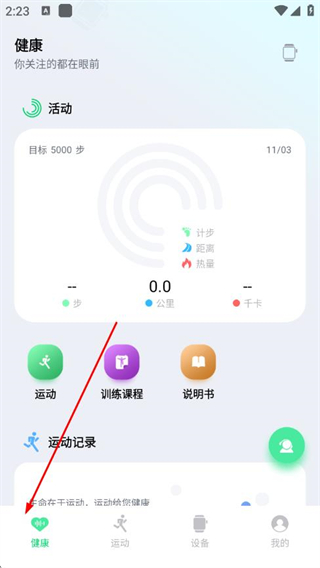 3、即可完成注冊(cè)操作,進(jìn)入APP健康頁面開始使用。