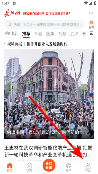1、打開長江網(wǎng)APP,點擊底部導(dǎo)航欄的我的,進(jìn)入個人頁面。