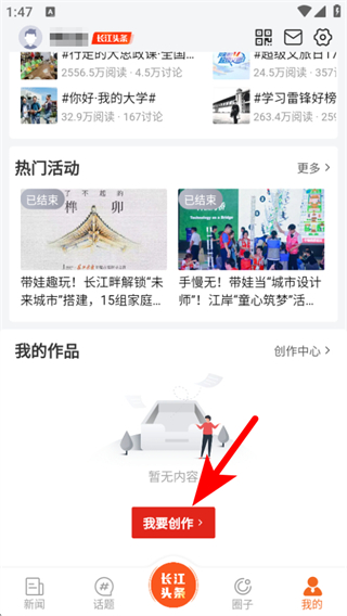 2、在個人頁面中,點擊我要創(chuàng)作按鈕,展開創(chuàng)作功能的選項。