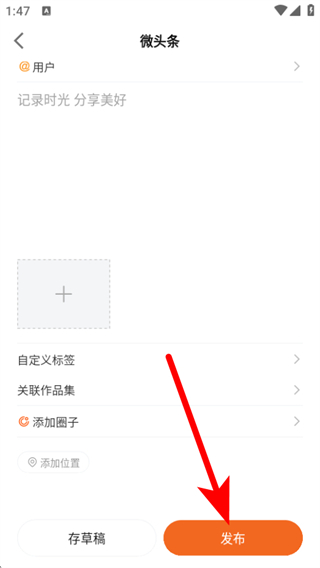 4、在編輯的頁面中,輸入內(nèi)容等元素后,點擊發(fā)布完成發(fā)布操作。