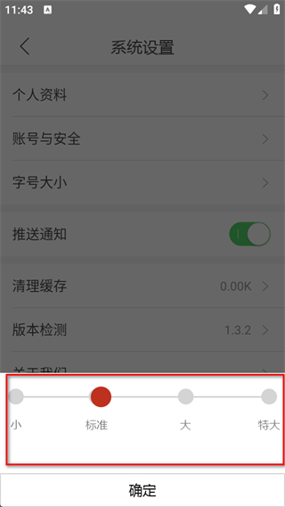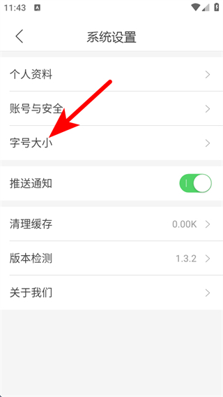 3、在系統(tǒng)設(shè)置的頁面,點擊字號大小,彈出字號調(diào)整滑塊。