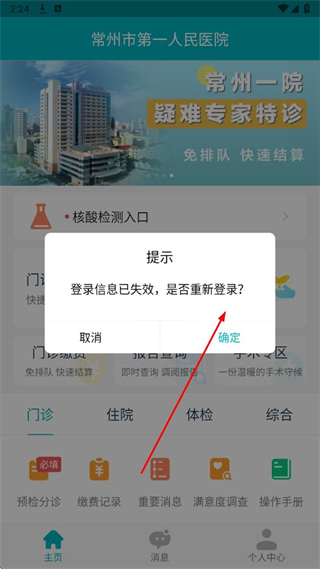 1、打開(kāi)常州一院APP,點(diǎn)擊右下角的個(gè)人中心。