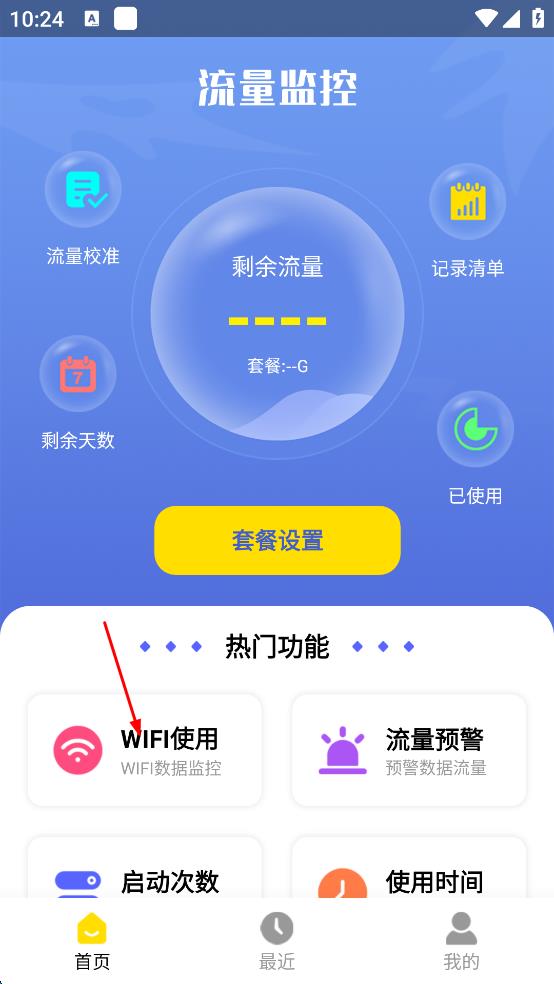 1、在軟件首頁點(diǎn)擊熱門功能中的WIFI使用,進(jìn)入WIFI使用頁面。