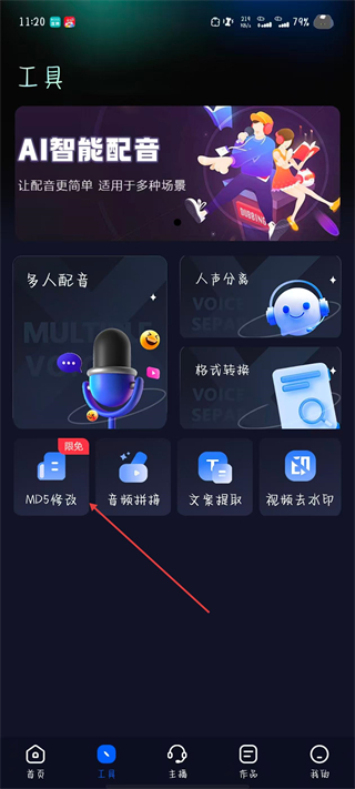 1、打開AI配音軟件,在工具頁面點擊MD5修改選項。