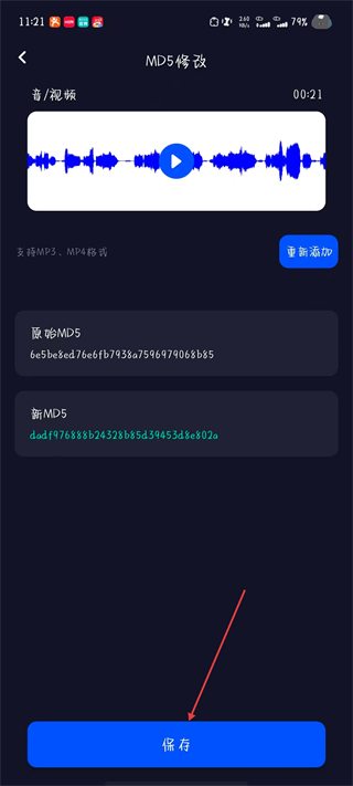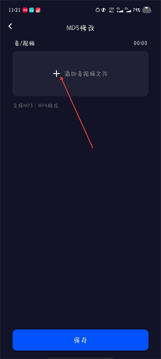 2、進入MD5修改頁面后,點擊添加音視頻文件按鈕。