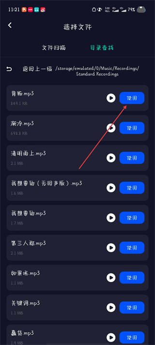 3、找到需要修改MD5的音視頻文件,點擊的使用按鈕。