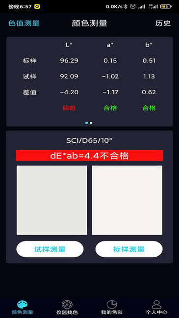 3、顏色比較,判斷顏色是否合格,多種色差公式(ΔE*ab,ΔE*94.ΔE*00.ΔEcmc等)。