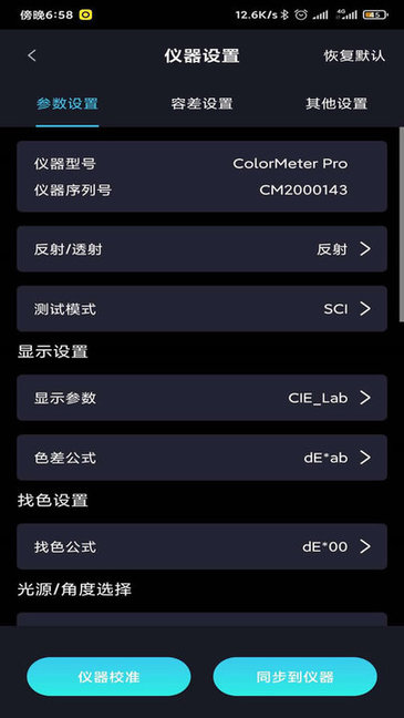 1、通過(guò)藍(lán)牙連接測(cè)色儀,采集顏色數(shù)據(jù),設(shè)置測(cè)色儀參數(shù),對(duì)儀器進(jìn)行校準(zhǔn)等操作。