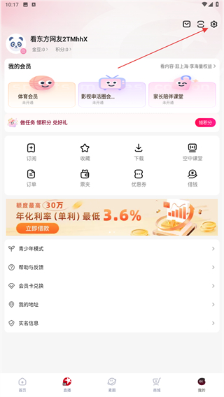 2、在我的頁面內(nèi),點擊右上角設(shè)置的功能圖標(biāo)。