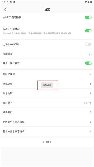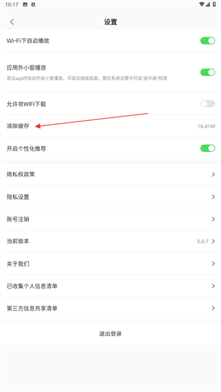 3、進入設(shè)置的界面內(nèi),點擊清除緩存的功能按鈕。