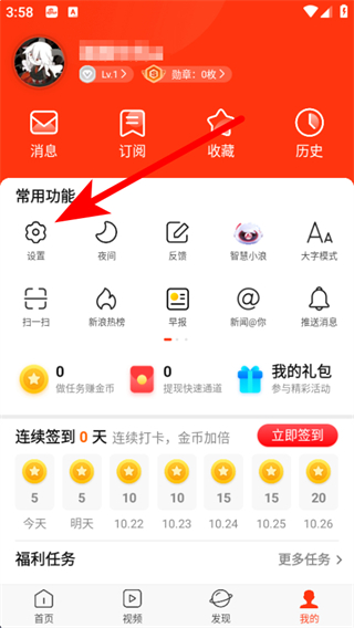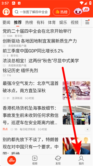 1、打開新浪新聞app,在首頁點擊底部我的,進(jìn)入個人的頁面。