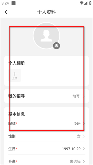 4、在個人資料頁面,可修改頭像、昵稱、基本信息等資料,完成修改后保存即可。