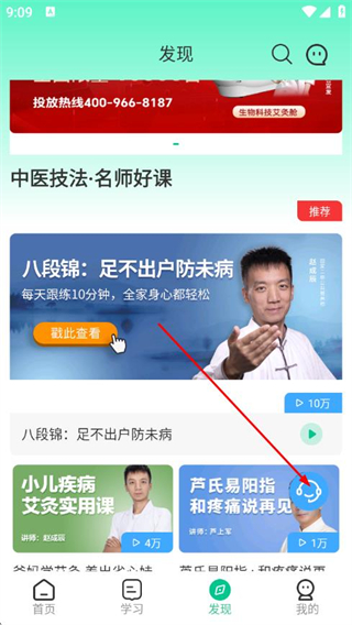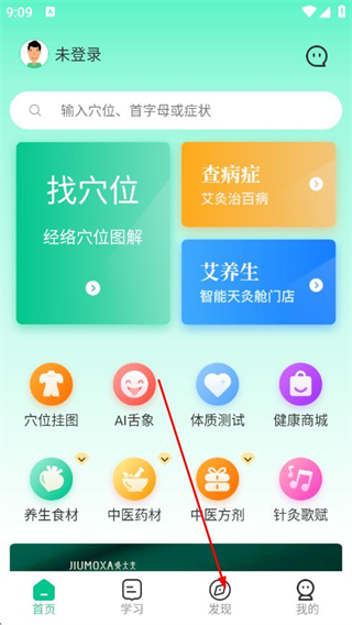 1、打開灸大夫APP,點(diǎn)擊底部導(dǎo)航欄發(fā)現(xiàn)。