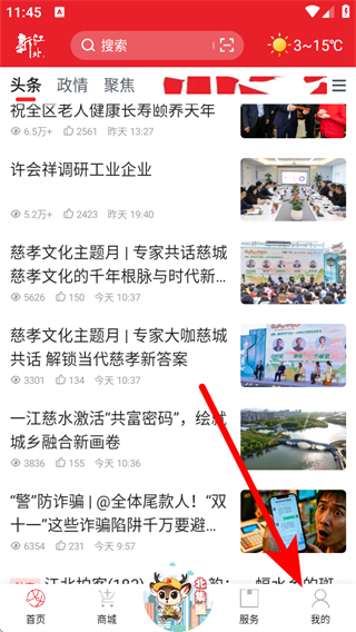 1、打開新江北APP,點(diǎn)擊底部導(dǎo)航欄的我的,進(jìn)入個(gè)人頁面。