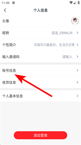 3、在個(gè)人信息的界面,點(diǎn)擊賬號(hào)信息選項(xiàng),進(jìn)入賬號(hào)信息頁面。