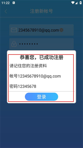 4、注冊成功后,記住注冊資料,點(diǎn)擊“登錄”即可進(jìn)入APP使用。