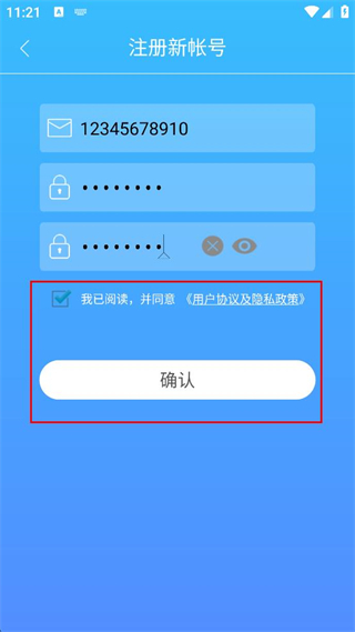 3、勾選“我已閱讀,并同意用戶協(xié)議及隱私政策,點(diǎn)擊“確認(rèn)”按鈕。