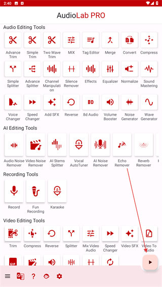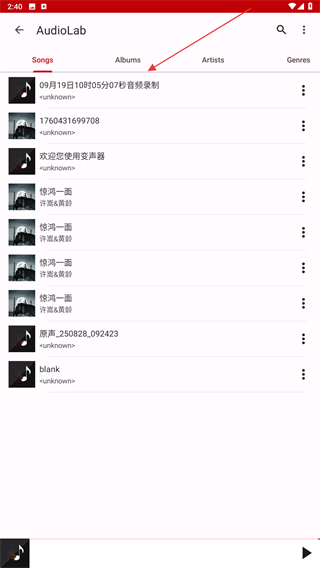 1、打開audiolab的APP,進(jìn)入時(shí)點(diǎn)擊右下角播放的按鈕。