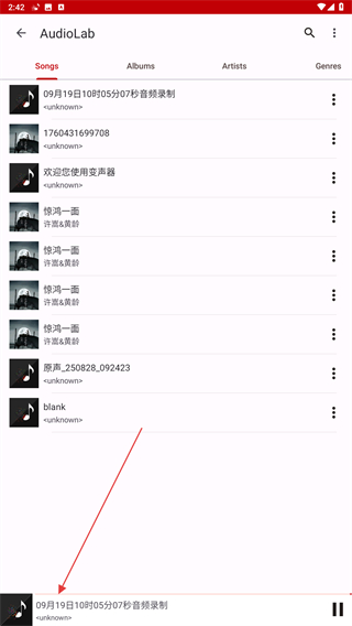 2、在所有曲目列表中,選中要使用的音頻素材文件,點(diǎn)擊進(jìn)入編輯界面。