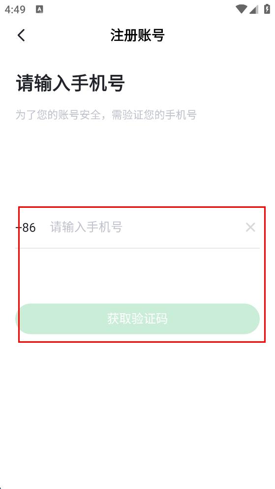 3、進入注冊賬號頁面,在“請輸入手機號”欄輸入手機號,點擊“獲取驗證碼”,輸入收到的驗證碼。