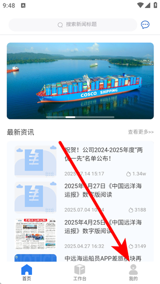 1、打開中遠(yuǎn)海運(yùn)船員APP,點(diǎn)擊底部我的,進(jìn)入個人頁面。