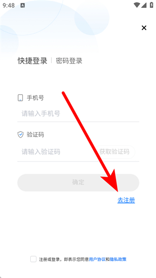 3、在登錄的頁面,點(diǎn)擊去注冊的按鈕,進(jìn)入注冊的頁面。