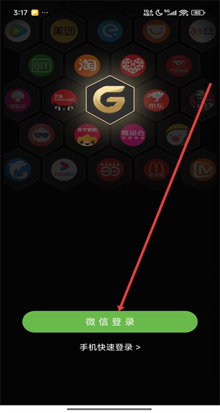 2、在登錄選擇頁面,點擊手機(jī)快速登錄選項,進(jìn)入到手機(jī)登錄頁面。
