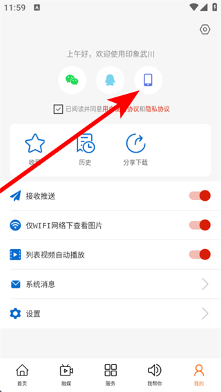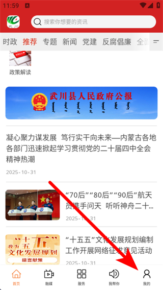 1、打開印象武川APP,點擊底部導航欄的我的,進入個人頁面。