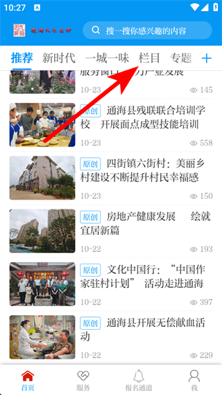 1、打開禮樂名邦A(yù)PP,點(diǎn)擊頂部導(dǎo)航欄的欄目,進(jìn)入對(duì)應(yīng)內(nèi)容頁面。