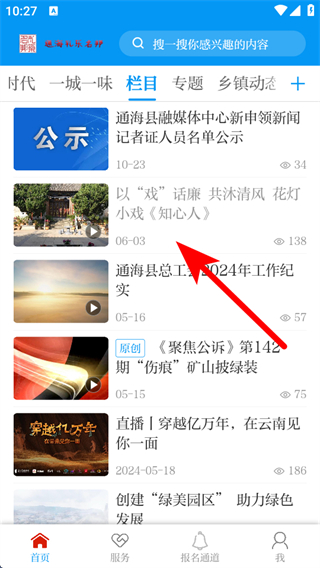 2、在欄目頁面中,點(diǎn)擊想要觀看的視頻,進(jìn)入視頻播放的界面。