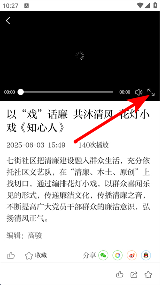 3、在視頻播放界面,點(diǎn)擊右上角的全屏圖標(biāo),即可全屏觀看視頻。