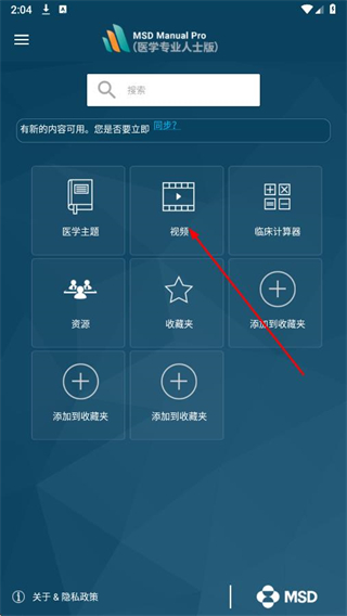 1、打開(kāi)默沙東診療專業(yè)版APP,在主界面點(diǎn)擊視頻。