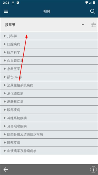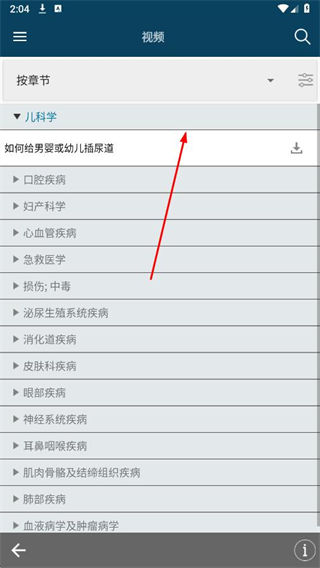 2、在視頻頁(yè)面,可按章節(jié)分類查看,點(diǎn)擊展開(kāi)兒科學(xué)。