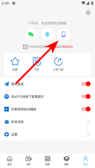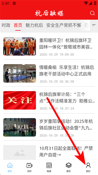 1、打開杭后融媒APP,點(diǎn)擊底部導(dǎo)航欄的我的,進(jìn)入個(gè)人頁(yè)面。