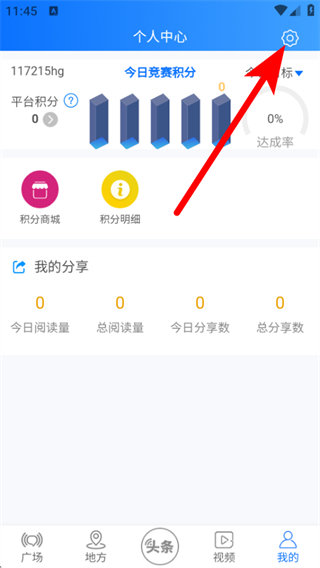 2、在個人中心頁面點擊右上角的設置圖標,進入設置的頁面。