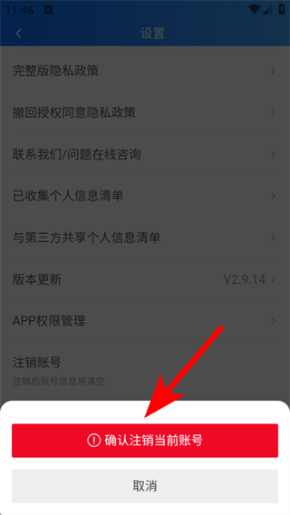4、在彈出的確認窗口中點擊確認注銷當前賬號,完成賬號注銷操作。