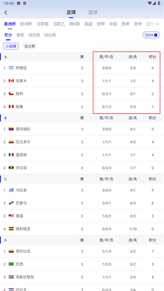 3、進(jìn)入足球的數(shù)據(jù)的界面內(nèi),可在下方查看各個(gè)比賽的數(shù)據(jù)內(nèi)容。