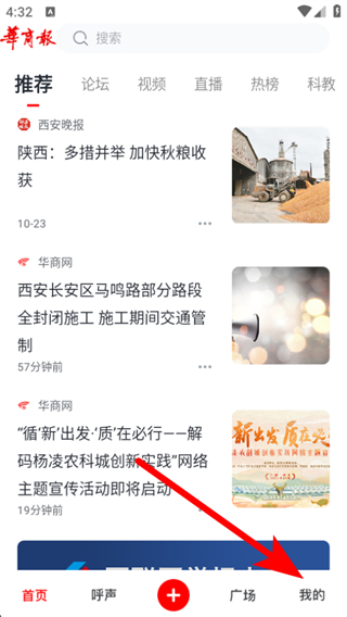 1、打開(kāi)華商頭條APP首頁(yè),點(diǎn)擊底部我的,進(jìn)入個(gè)人的頁(yè)面。