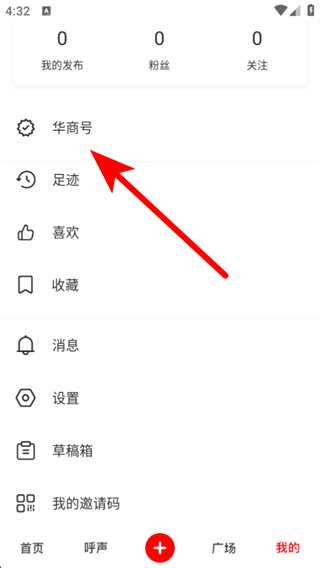 2、在個(gè)人的頁(yè)面,我們點(diǎn)擊華商號(hào)的選項(xiàng),進(jìn)入認(rèn)證類型選擇頁(yè)面。