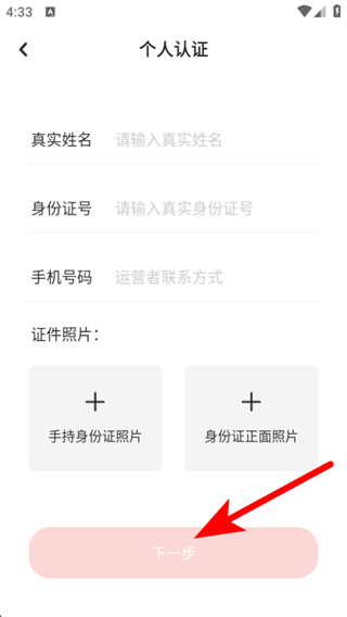 4、在頁(yè)面中輸入真實(shí)姓名等信息后,點(diǎn)擊下一步,按照提示完成后續(xù)認(rèn)證。