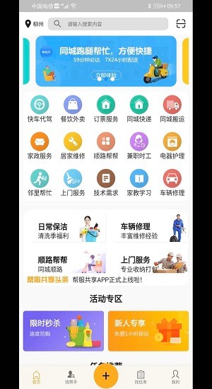 幫服共享是真正為人們?nèi)粘I钐峁┍憬莘?wù)的一款A(yù)PP軟件,例:家政服務(wù)、家電維修、管道疏通、上門服務(wù)、車輛修理、順路快送等均可一鍵發(fā)布或兼職幫忙,大眾創(chuàng)業(yè) 萬眾剛需!